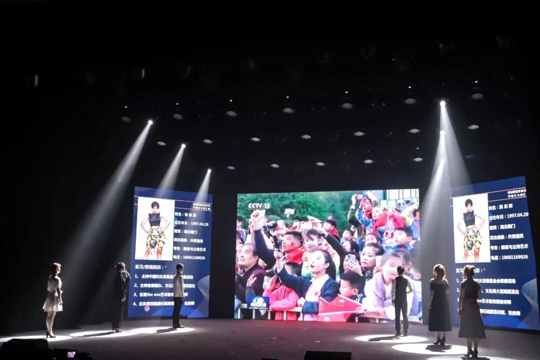 在匯報(bào)展演現(xiàn)場(chǎng),演員出場(chǎng)或者主持人出場(chǎng)舞臺(tái)兩側(cè)的顯示屏上,都會(huì)展示相應(yīng)畢業(yè)生的“電子簡(jiǎn)歷”。